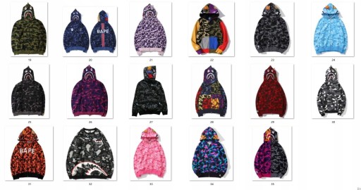 ✅【Pełne zapięcie na zamek】 Bape męska bluza z kapturem na zamek na całą głowę, specjalny styl z kapturem z długim rękawem w stylu rekina