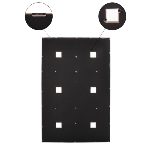 Ramki pomieszczą fotografie o maksymalnym wymiarze 10x15cm, który jest bardzo popularny. Multirama posiada 12 ramek ułożonych poziomo oraz 12 ramek w pionie. Dzięki temu można użyć na niej swoje ulubione zdjęcia. Zdjęcia ułożone są za bezpieczną plexą, która utrzymuje je w odpowiedniej pozycji.