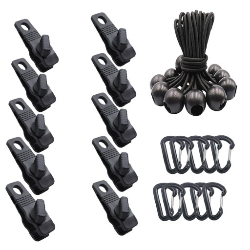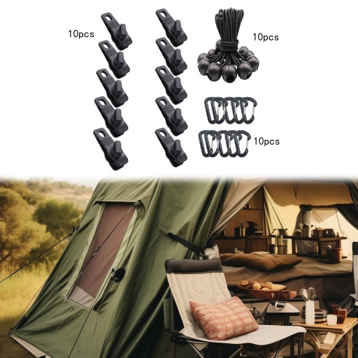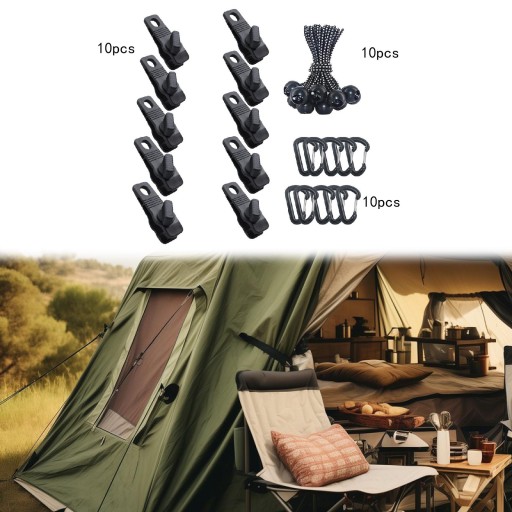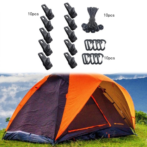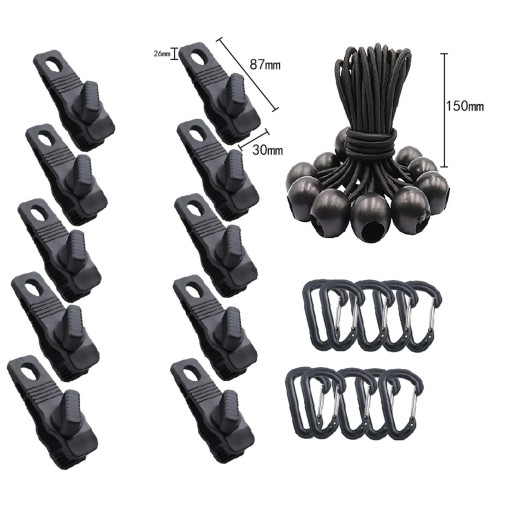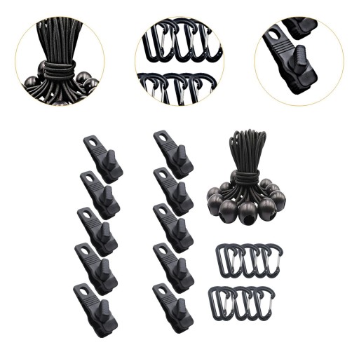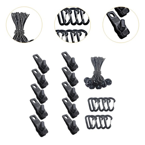 [Zestaw narzędzi kempingowych na zewnątrz]: Zestaw klipsów do plandek zewnętrznych zawiera klipsy mocujące, karabińczyki i elastyczne liny, dzięki czemu jest doskonałym dodatkiem do zajęć na świeżym powietrzu.