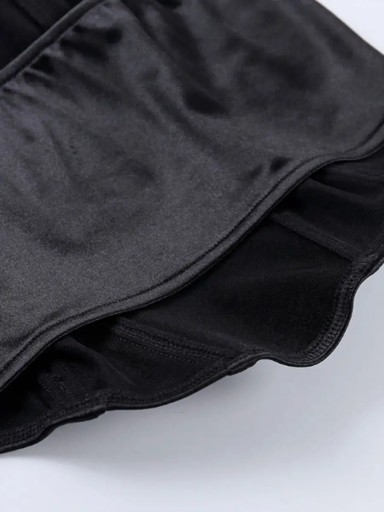 Krótki top gorsetowy wykonany z elastycznej satynowej* tkaniny, będzie stanowić doskonałe uzupełnienie nie tylko codziennej, ale i eleganckiej stylizacji.