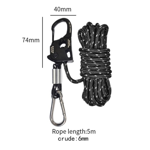 [Regulator samoblokujący]: Samoblokujący regulator ze stopu aluminium jest wyposażony w hak. Wystarczy delikatnie pociągnąć, zostanie mocno zamocowany i nacisnąć przełącznik, aby poluzować linę.