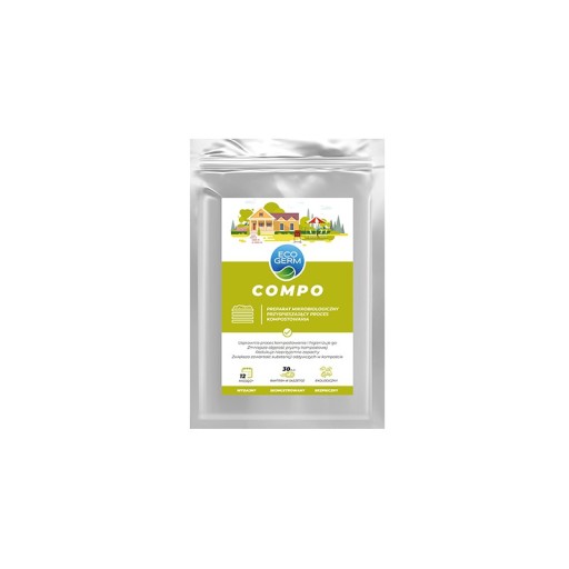 EcoGerm Compo – unikalny preparat mikrobiologiczny, który przyspiesza proces degradacji i fermentacji odpadów organicznych, takich jak: resztki roślinne, spady owocowe, skoszona trawa, odpady kuchenne, popiół drzewny, papier, kora, trociny i rozdrobnione gałęzie. Zawiera wyselekcjonowane szczepy naturalnie hodowanych bakterii z dodatkiem składników odżywczych, enzymów i minerałów. Bezpieczny dla ludzi, zwierząt oraz środowiska naturalnego. Wyjątkowo wydajny –1 g preparatu zawiera ponad 1 mld aktywnych bakterii.