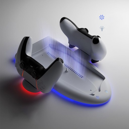 - Dzięki futurystycznej estetyce statku kosmicznego nasza stacja ładująca jest czymś więcej niż tylko ładowarką - chłodzi konsolę, zapewnia oszałamiające oświetlenie RGB i płynnie integruje się z PS5 Slim.