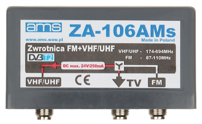 Zwrotnica antenowa ZA-106AMS z 2 wejściami stosowana jest jako element sumujący sygnały z 2 anten (sygnały pasma FM (87...110 MHz), oraz pasma VHF+UHF (174...694 MHz)), montowana jest na maszcie antenowym, w pobliżu zestawu antenowego
