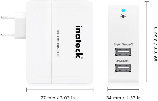 Настенное зарядное устройство с двумя портами Inateck 19,5 Вт