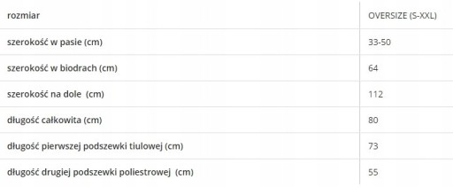 Wymiary spódniczki podane są w tabeli rozmiarów.