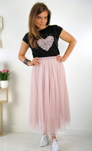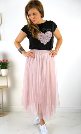 Tiulowa spódnica plisowana W KOLORZE BLADEGO RÓŻU;