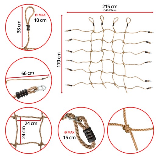 ⭐️ Bezpieczna zabawa połączona z aktywnością fizyczną - wspinanie się wymaga wysiłku w rękach, które muszą udźwignąć ciężar ciała; w nogach, które wspomagają wspinanie, a także wymaga wysiłku mięśni brzucha, które odpowiadają za podciąganie. Wytrzymałe liny zapewniają, aby ta zabawa i ćwiczenia były bezpieczne i wygodne w wykonaniu.