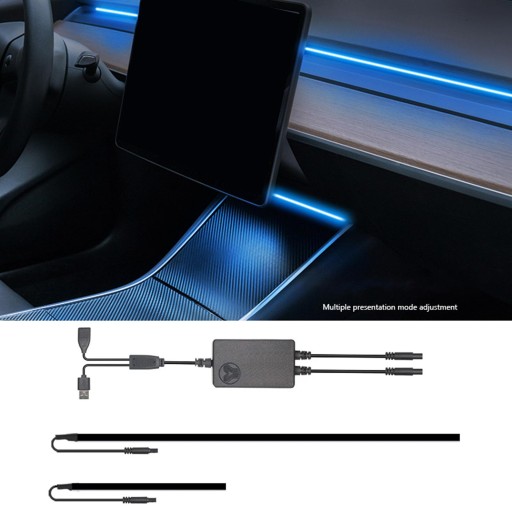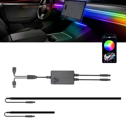 Oświetlenie wnętrza samochodu LED Sterowanie aplikacją Nastrojowe oświetlenie do modelu Tesla 3 Y z 2 paskami świetlnymi
