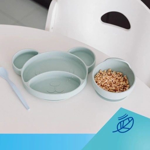 Dzięki specjalnej przyssawce bezpiecznie przylega do podłoża i zapobiega przypadkowemu strąceniu ze stołu, czy krzesełka do karmienia.