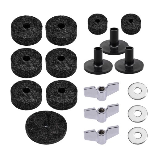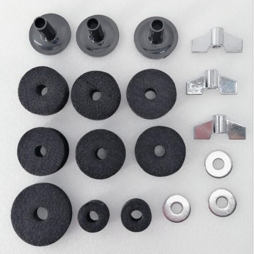 CZĘŚCI BĘBNA: podkładki są mocne i zapobiegają kolizjom talerzy z metalem, dobrze chronią talerze i mogą poprawić jakość dźwięku i wydajność talerzy. Nakrętki i podkładki mogą zwiększyć bezpieczeństwo talerzy i podkładek.