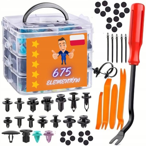 ✅ Dodatkowo, zestaw został wzbogacony o narzędzie do usuwania klipsów, co ułatwia demontaż i naprawy. Bądź gotowy na każdą sytuację – wybierz nasz zestaw 675 elementów do tapicerki samochodowej i ciesz się solidnością oraz wygodą podczas prac naprawczych i wykończeniowych w Twoim samochodzie!