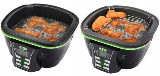 Wyświetlacz LCD służy do ustawiania czasu, w którym chcesz przygotować posiłek. Garnek jest wyposażony w wyjmowany pojemnik, który znacznie ułatwia czyszczenie. Jako bogate akcesoria w opakowaniu znajduje się zestaw do fondue 6 widelców, kratka do gotowania na parze, kratka do grillowania i kosz do smażenia. Ten wspaniały wielofunkcyjny garnek sprawi, że Twoje jedzenie będzie bardzo szybko i wygodnie przygotowane.