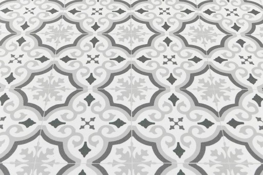 Wykładzina Artifact Evora charakteryzuje się eleganckim wzorem inspirowanym klasycznymi kaflami o bogatych zdobieniach. Subtelne odcienie szarości oraz kremu tworzą harmonijną kompozycję, nadając wnętrzu wyjątkowego charakteru. Wzór o wymiarach 20x20 cm, powtarzający się co 100 cm x 99,5 cm, zapewnia spójny i estetyczny wygląd podłogi. Ta stylowa kolorystyka sprawia, że wykładzina świetnie wpisuje się w klasyczne, retro i nowoczesne aranżacje, dodając im elegancji i wyjątkowego uroku.