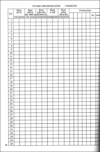W dzienniczku nauczyciela wychowania fizycznego ujęto mi. znane próby, zadaniem których jest określenie poziomu i postępu rozwoju fizycznego ucznia.