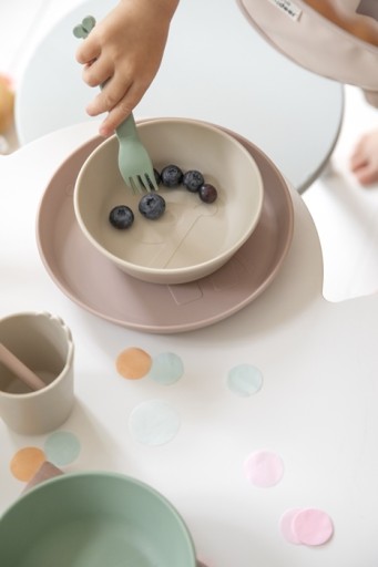 Sztućce dla dziecka z kolekcji Kiddish to zestaw składający się z widelca, nożyka i łyżeczki. Sztućce o zaokrąglonych kształtach zaprojektowane zostały z myślą o dzieciach, które dopiero rozpoczynają naukę samodzielnego jedzenia. Niewielki rozmiar sztućców idealnie wpasowuje się w małe rączki dzieci zapewniając im wygodę i komfort podczas posiłku.