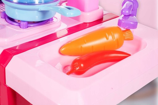Dziecko podczas zabawy kuchnią uczy się podstawowych prac domowych. Zabawka zajmie malucha na wiele godzin i dostarczy mu dużo radości i dobrej zabawy