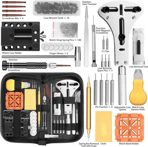 UPGRADE KOMPLETNY ZESTAW DO NAPRAWY ZEGARKÓW 155 SZT. Garnitur do użytku profesjonalnego i ogólnego, który może spełnić większość wymagań związanych z naprawą zegarków.