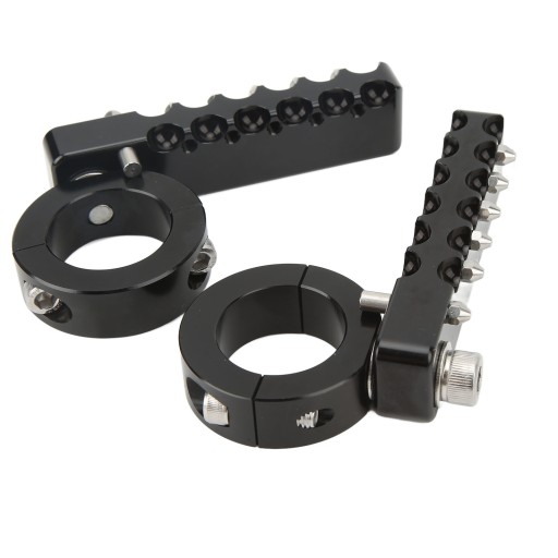 2. Bezpieczny montaż: klips mocujący bezpiecznie zaciska zderzak motocykla, a konstrukcja blokująca utrzymuje pedały pod pożądanym kątem.