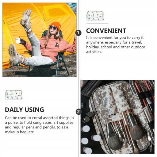 Ta przenośna torba do przechowywania ma idealny rozmiar do przechowywania małych przedmiotów, takich jak pędzle kosmetyczne, produkty do makijażu, produkty osobiste, gumki do włosów, pieniądze i przypadkowe rzeczy, które w przeciwnym razie byłyby luźne w torbie. Może być również Twoją kosmetyczką do przechowywania szminki, szczoteczki do brwi, długopisów i innych niezbędnych w podróży rzeczy.