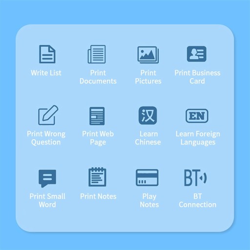 1. Bezpośredni atrament termiczny toner lub wstążka 2. Wielofunkcyjna łatwa w użyciu drukarka etykiet stacjonarnych 3. Spraw aby życie pełne witalności nie ma więcej chaosów 4. Nadaje się do prezentów dziecięcych.Dzień Dziecka.Okazja Graduation 5. Druk termiczny łatwy do przenoszenia.Bezpośrednie połączenie Bluetooth Drukowanie Uwaga Drukowanie etykiet Drukowanie zdjęć Nadaje się do albumu fotograficznego DIY.