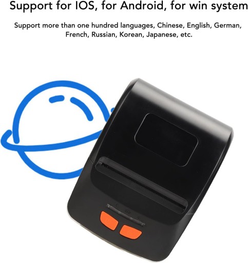 Szybkie drukowanie Drukarka termiczna obsługuje szybkie drukowanie od 60 do 150 mm s z baterią o dużej pojemności 2000 mAh długim czasem czuwania Połączenie wielu urządzeń Drukarka etykiet obsługuje jednoczesne połączenie wielu systemów i wielu urządzeń automatyczne przetwarzanie kolejek gdy wiele zamówień jest wprowadzanych w tym samym czasie z widocznym oknem do obserwacji pozostałego papieru Interfejs TYPU C Drukarka biletów ma pojemnik na papier o dużej pojemności i obsługuje papier termiczny o szerokości 57 mm. z interfejsem danych TYPE C można podłączyć do ładowarki ładowarki samochodowej power banku USB Obsługiwane systemy i funkcje Przenośna drukarka termiczna ma konstrukcję z dwoma przyciskami monit o połączenie BT monit o zasilanie i monit o brak papieru. Obsługa BT dla IOS dla Androida dla systemu win Obsługiwane języki drukarka paragonów obsługuje ponad 100 języków chiński angielski niemiecki francuski rosyjski koreański japoński itp. kompatybilna z wieloma aplikacjami