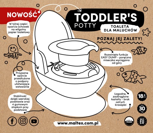 - Autentyczny wygląd: Toaleta dla Maluchów wygląda jak prawdziwa toaleta, co ułatwia dzieciom szybkie opanowanie jej użytkowania.