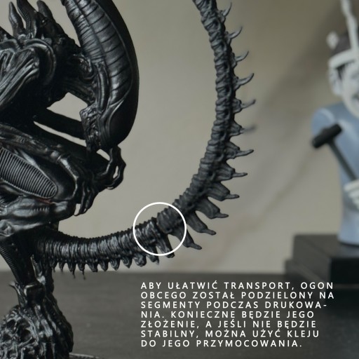 Aby ułatwić transport, ogon obcego został podzielony na segmenty podczas drukowania. Będziesz musiał go złożyć, a jeśli nie jest stabilny, możesz przymocować go klejem.