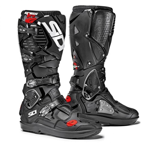 - Crossfire wykorzystuje cztery mikroregulowane zamknięcia klamrowe z naciętymi pasami do regulacji zapięcia. Klamry, paski i zaciski podtrzymujące można łatwo wymienić. Klamry mają tylko jeden punkt mocowania (za pomocą śruby), co umożliwia ich łatwe zamknięcie, dzięki czemu pasek może być dostosowywany do pozycji kierowcy. Wszystkie cztery sprzączki działają niezależnie od siebie. Ten system pozwala butowi dopasować się do wszystkich kształtów stóp i podudzi niezależnie, dzięki czemu każdy but jest o wiele wygodniejszy dla każdego kierowcy.