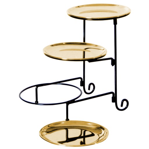 Трехъярусные тарелки с круглыми вазами для фруктов.