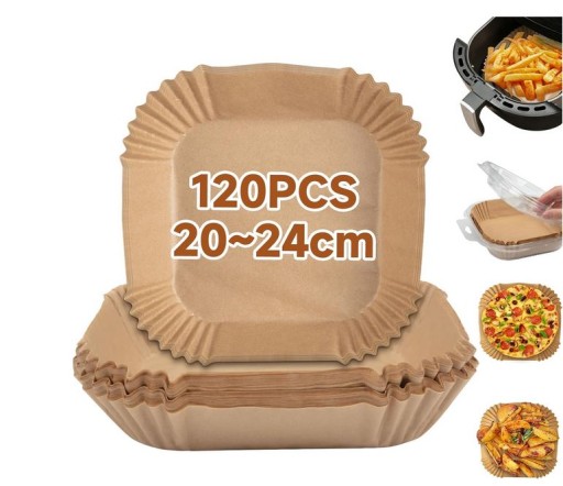 Zestaw 120 arkuszy papieru pergaminowego idealnego do frytkownicy i piekarnika. Zapewnia łatwe czyszczenie i równomierne pieczenie.