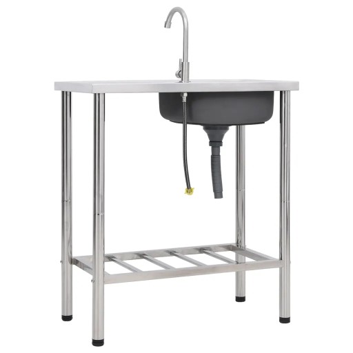 vidaXL Zlewozmywak kempingowy, jednokomorowy z kranem, stal nierdzewna