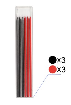 ✅ Zawiera 6x uniwersalny wymienny wkład grafitowy czerwony 2B (Ø 2,8 mm)