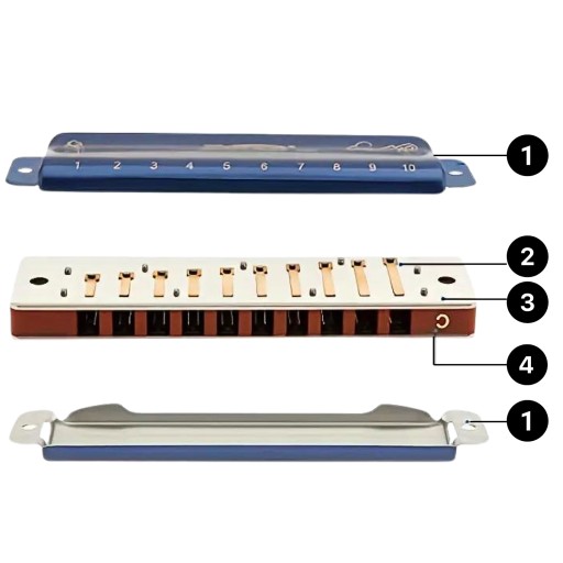 ♫ Klasyczna diatoniczna ("bluesowa") harmonijka w stroju Richtera, najbardziej popularny typ tego instrumentu.