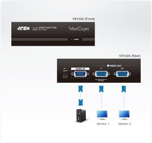ATEN VS132A, 450 МГц, 2-полосный видеоразветвитель VGA