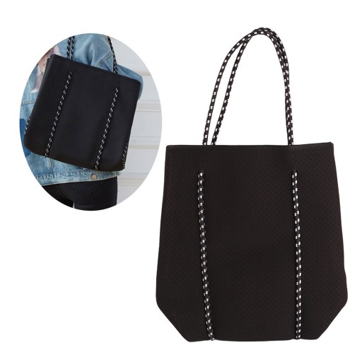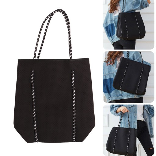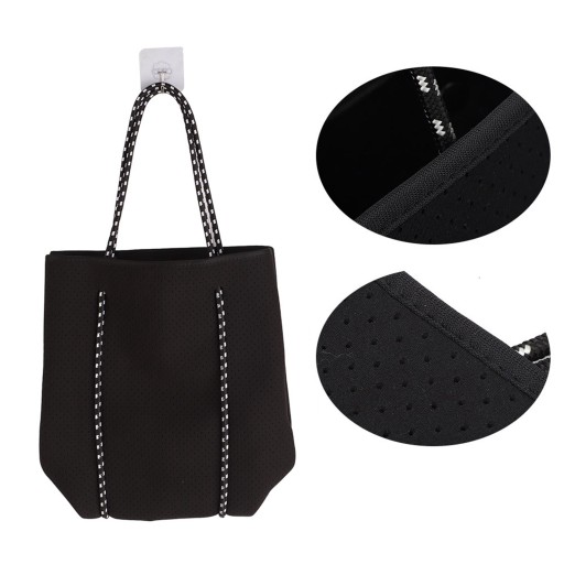 Zewnętrzna neoprenowa perforowana torba plażowa o dużej pojemności Casualowa torba na zakupy z paskiem na rękę mamusi.Czarna