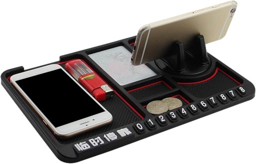 Materiał PCW Wykonany z materiału PCW organizer na deskę rozdzielczą jest wyposażony w ulepszoną wielofunkcyjną podkładkę antypoślizgową zapewniającą fizyczny poślizg w wysokich i niskich temperaturach. Dostarczany ze stojakiem na telefon Ta antypoślizgowa podkładka na telefony komórkowe ma kilka oddzielnych przegródek w których można przechowywać swoje rzeczy aby utrzymać samochód w czystości i porządku. Jest dostarczany z uchwytem na telefon. Łatwy do czyszczenia organizer na deskę rozdzielczą wystarczy umyć ręcznie lub w pralce i przetrzeć go ściereczką lub gąbką. Jest wygodny w czyszczeniu i może być używany przez długi czas. Wspaniały prezent Mata na telefon na deskę rozdzielczą samochodu jest idealna na prezenty od właścicieli samochodów. I za każdym razem może być rozrywką. Mogą być również prezentem na Boże Narodzenie i wszystkie inne święta. Szerokie zastosowanie Mata na deskę rozdzielczą na telefon komórkowy nadaje się do umieszczenia okularów przeciwsłonecznych monet telefonów komórkowych kluczy wizytówek lub innych rzeczy bez wpływu na widoczność kierowcy.