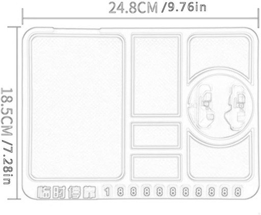 Materiał PCW nie uszkadza konsoli środkowej zamiennik dla większości samochodów. Odporność na wysoką i niską temperaturę bez deformacji i bez smaku. Trwała można ją wielokrotnie myć delikatnie i trwała odporna na tarcie na powierzchni antypoślizgowej. Funkcja karty parkingowej szyba za oknem wyraźnie widać numer telefonu samochodu. Mata na telefon komórkowy na deskę rozdzielczą samochodu bezpieczny sposób na przymocowanie smartfona kluczy monet okularów lub innych przedmiotów na desce rozdzielczej samochodu.