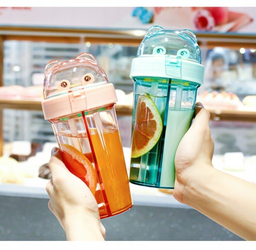 420mL podwójna butelka na wodę ze słomką o dużej pojemności kubek na wodę kreatywna para kubek do wody przenośne butelki do picia czajnik Drinkware