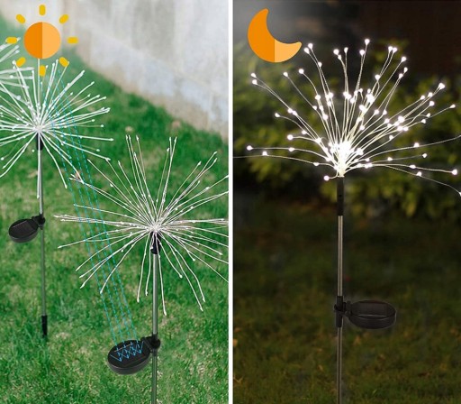 Słoneczne światło fajerwerków ma dwa tryby świecenia. Gdy przełącznik jest ustawiony na stronę ON, jest to tryb migania, przełącznik znajduje się w stanie OFF w środkowej pozycji, a pozycja OFF to tryb stałego światła. To kreatywny prezent dla przyjaciół lub sąsiadów na Boże Narodzenie, Halloween i Święto Dziękczynienia. To zewnętrzne oświetlenie dekoracyjne oświetli tarasy, klomby, ogrody, podwórka, ogrodzenia, chodniki i ścieżki itp.