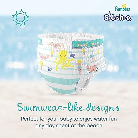 - Jednorazowe pieluchy do pływania Pampers Splashers: stworzone do zabawy na basenie, plaży i w parku wodnym