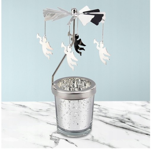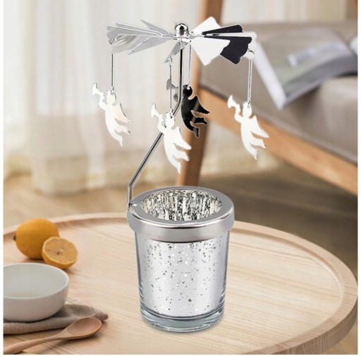 Obrotowy projekt: automatycznie obraca się, gdy dostaje ciepło ze świecy, a także obraca się, gdy wieje wiatr. Dekoracje będą odbijać światło i rozprowadzać je na pobliskich ścianach i sufitach. Bardzo nadaje się na romantyczne wyjątkowe wieczory .