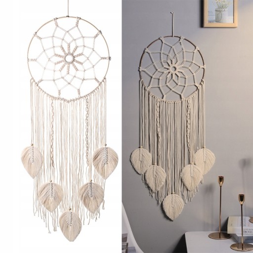 2.Materiał: żelazny pierścień, pióro, drewniane koraliki, nić bawełniana, tkanina flokująca, koło rattanowe,