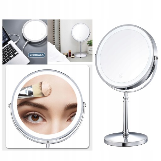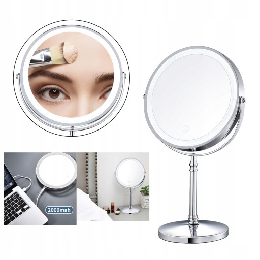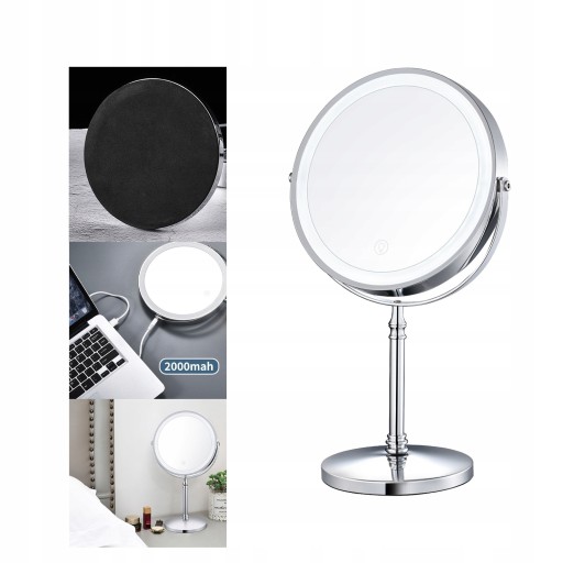 8-calowe lusterko kosmetyczne z diodami LED na biurko Lusterko kosmetyczne powiększa 5-krotnie dwustronne lustro Lustro wypełniające USB