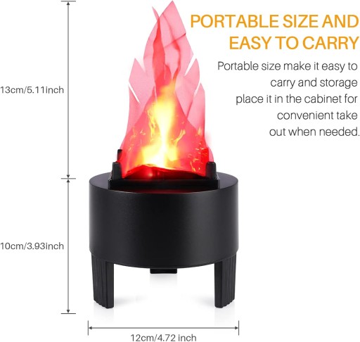 Decorative artificial fire flame light. Realistic flame effect. 3D vivid flickering silk flame without the true dangers of real fire, it is very safe for use. You get the amazing glow and movement of a real flame. Made with sturdy ABS plastic and lit by orange LED lights, the flame light will last you through many occasions and events. Portable size, so it's compact size to fit most places and easy to transport. Easy to use, just plug the lamp into a standard electrical outlet then start enjoying a beautiful flickering silk flame without the true dangers of real fire.Product DescriptionFeatures:1. 3D fake flame light is made of red silk fabric and cut into the shape of flame, which is very realistic.2. LED flame effect lamp black base is made of high-quality ABS plastic and is durable.3. Campfire lamp is small and compact, saving space, easy to carry and store.