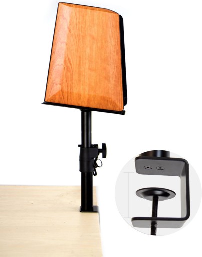 Zacisk stołowy można zamontować nawet na grubych blatach biurek i stołów. Platforma posiada antypoślizgowe paski EVA które również zmniejszają poziom wibracji przenoszonych przez kolumny.