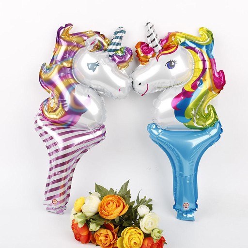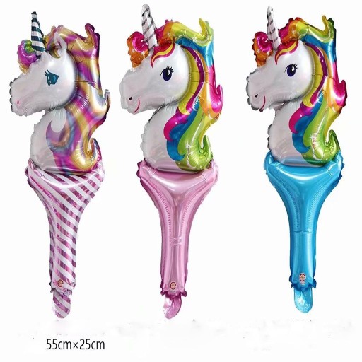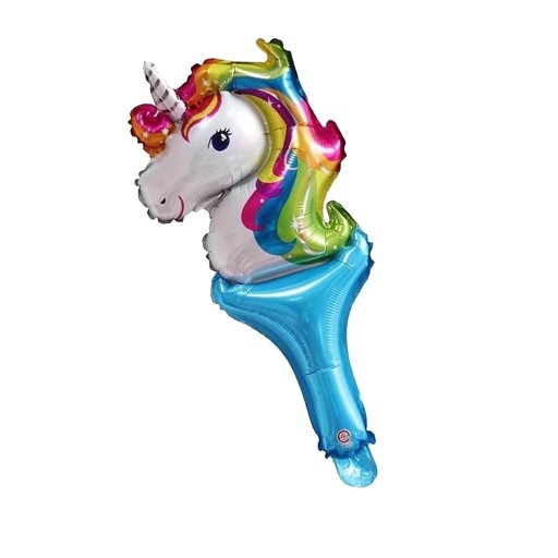 Balon foliowy z helem z motywem jednorożca z ręcznymi patyczkami.
