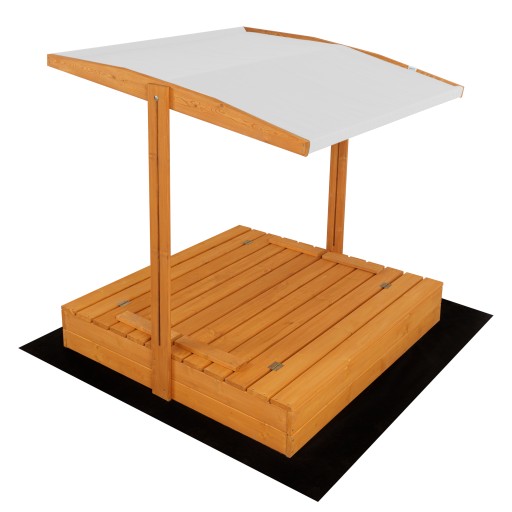 - Daszek piaskownicy jest łatwo regulowany dzięki praktycznym nakrętkom motylkowym. Dzięki temu, bez użycia jakichkolwiek narzędzi, możesz szybko dostosować wysokość daszka do potrzeb ochrony przed słońcem lub opuścić go dla dodatkowego zacienienia. Regulacja jest prosta i intuicyjna..