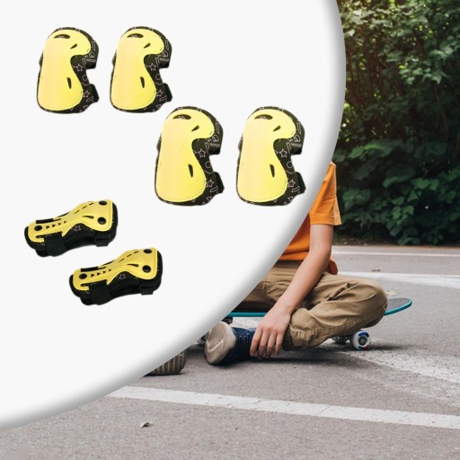 [Pakiet zawiera]: 2 nakolanniki, 2 na dłonie i 2 na łokcie wykonane z wytrzymałego materiału PP, odpowiednie dla dzieci o wadze od 25 do 45 kg (7-12 lat).