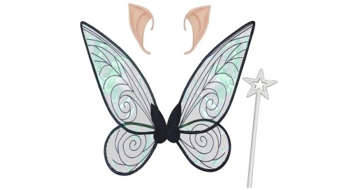 Strój, kostium metaliczne skrzydła,elfa, wróżki, silikonowe uszy, różdżka